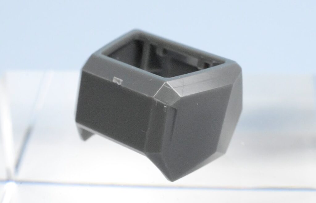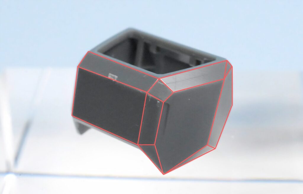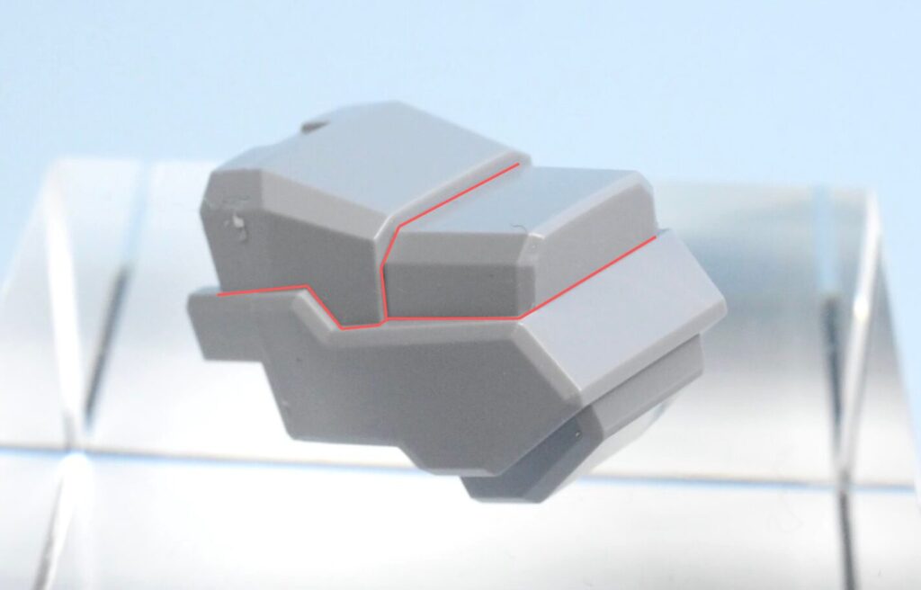 ガンプラは安全性や成形の都合で、どうしても角が少し丸くなっています。
