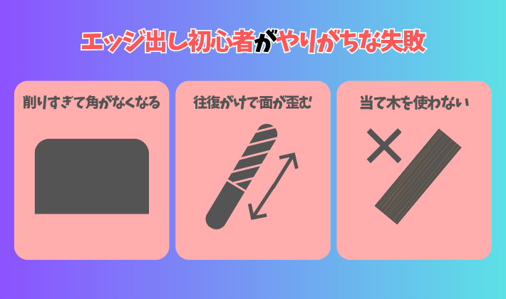 エッジ出しでは、必ず当て木にヤスリを貼って使うのが基本です💡