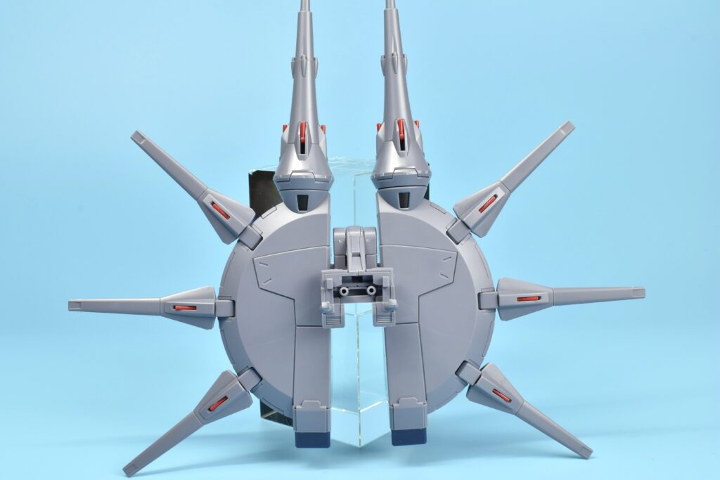 スラスター周りも赤い部分がきちんと色分けされ、フィン状のディテールまで造形されているので、巨大パーツでものっぺりした印象はゼロ✨
