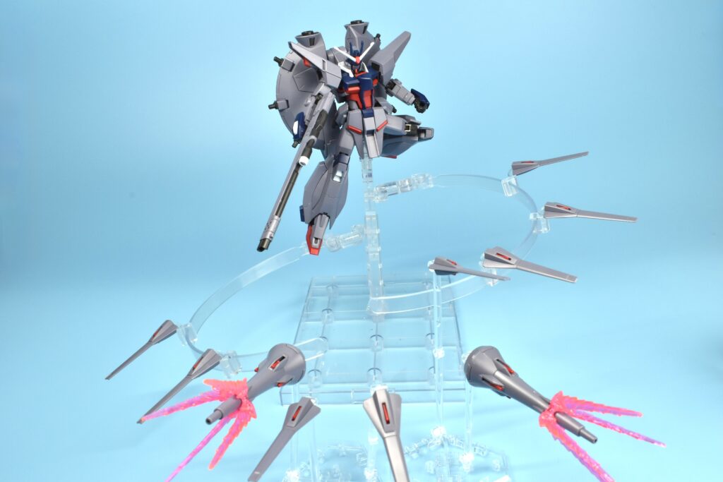 ドラグーンシステムの突撃ビーム機動砲をすべて取り外し、各ノズルは3mm穴仕様なので市販スタンドが使えます🔧