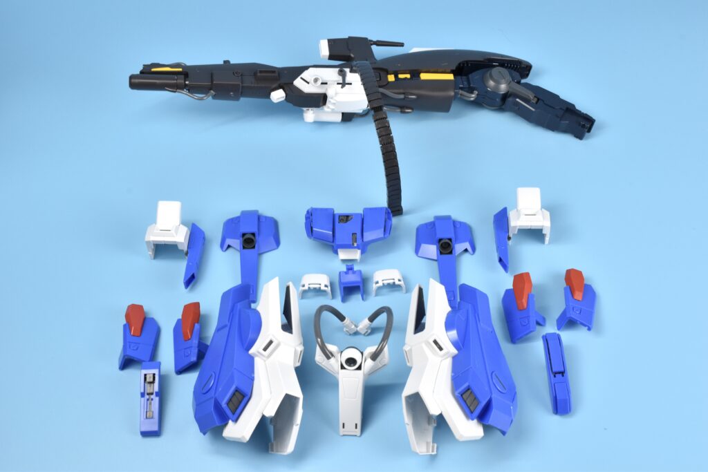 そして嬉しいポイントとして、胸アンテナ・サイドアーマー接続パーツ・腰後部アーマー・脚ダクトなど、通常強化型ZZ用パーツも余剰で付属🔥