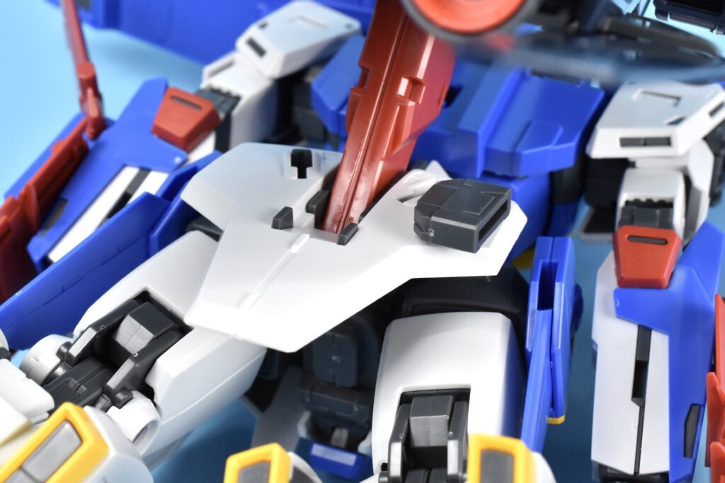 見た目はやや控えめですが、フルアーマー装着時の干渉対策になっています。