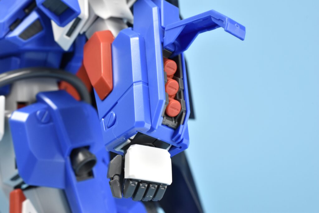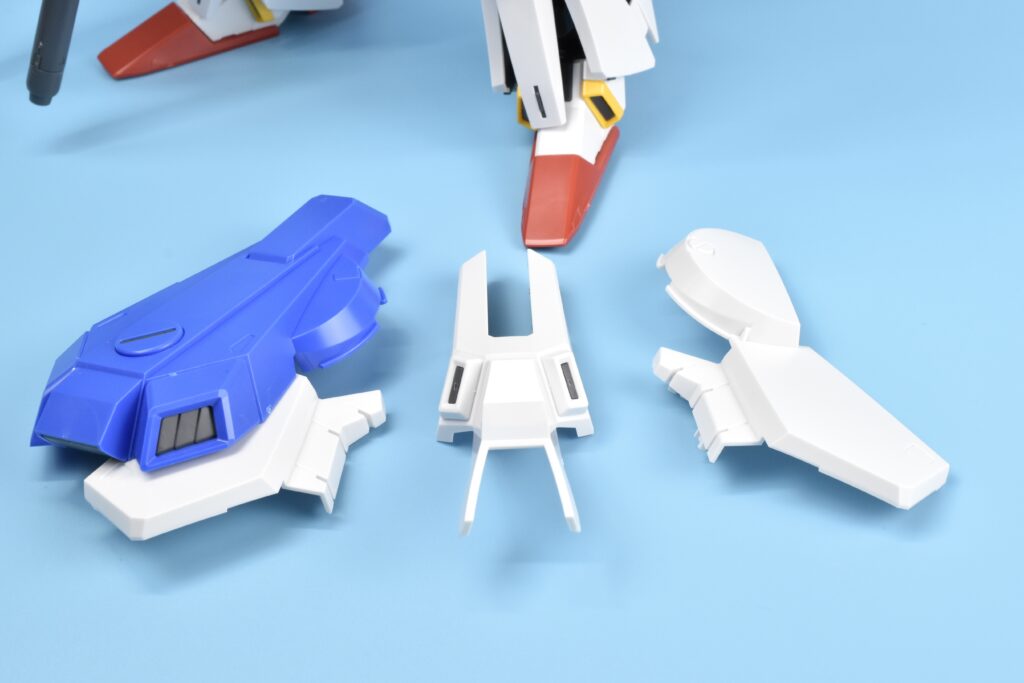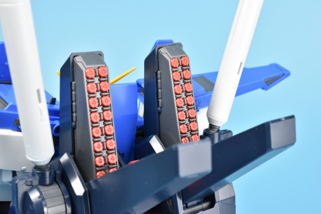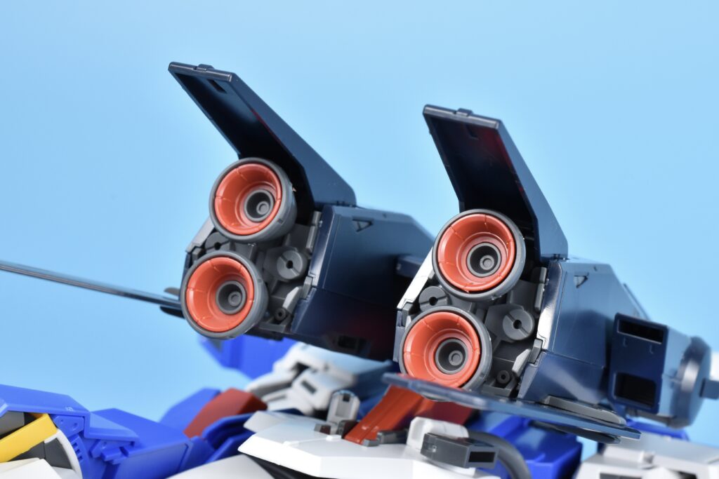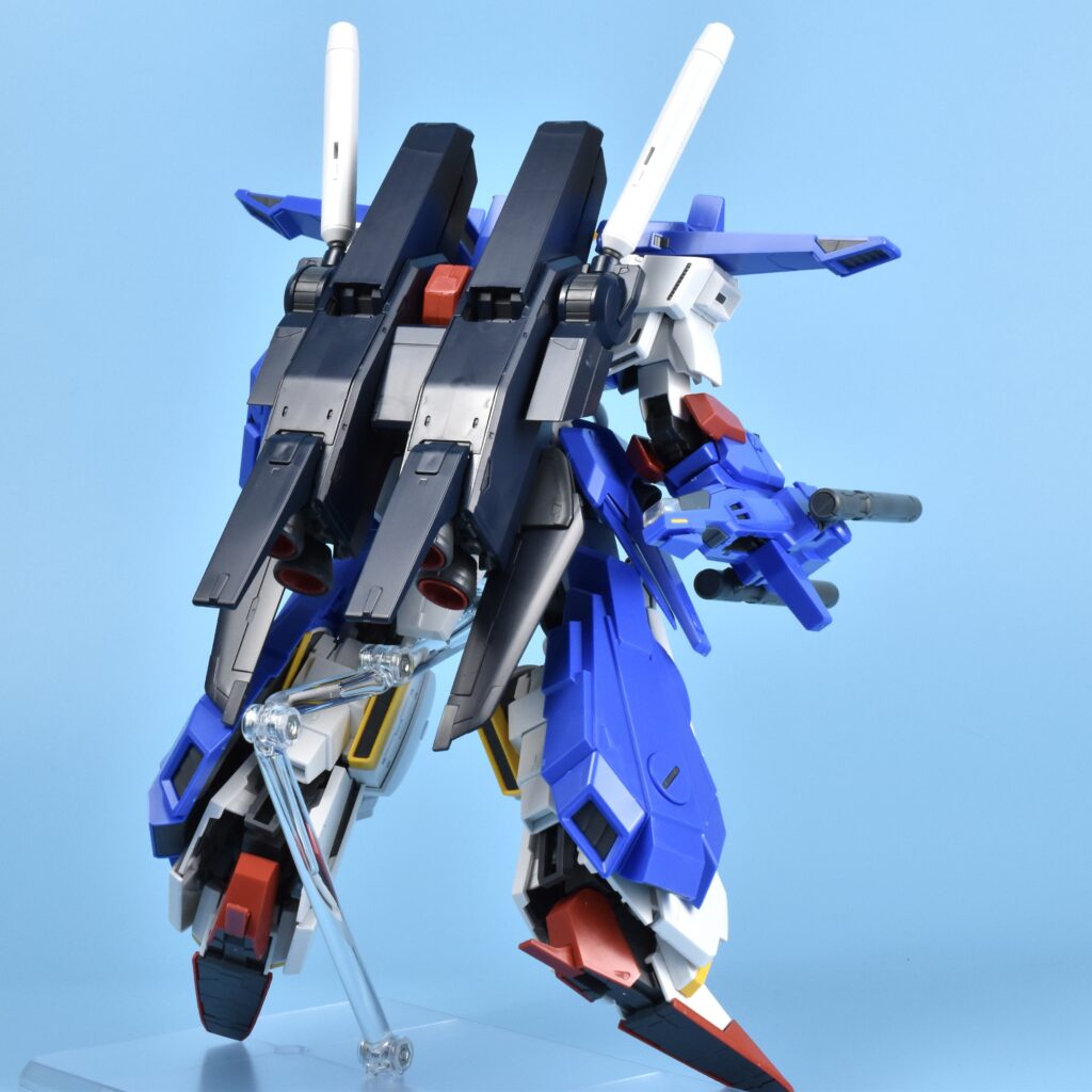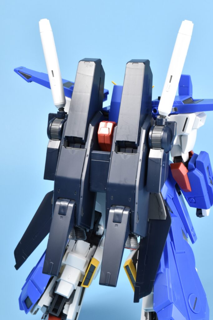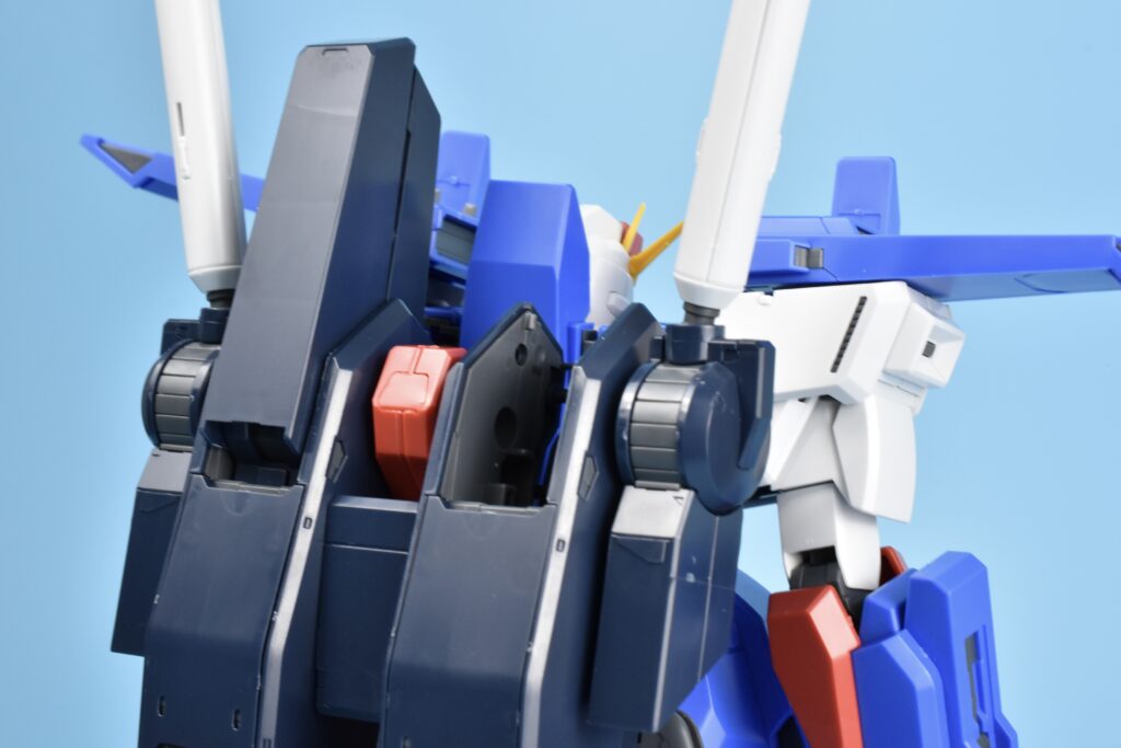 特にバックパックのスラスターは内部の赤色まで成型色で再現。