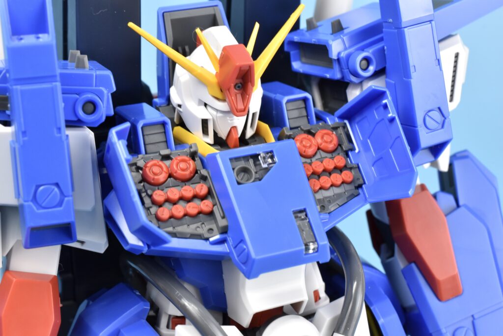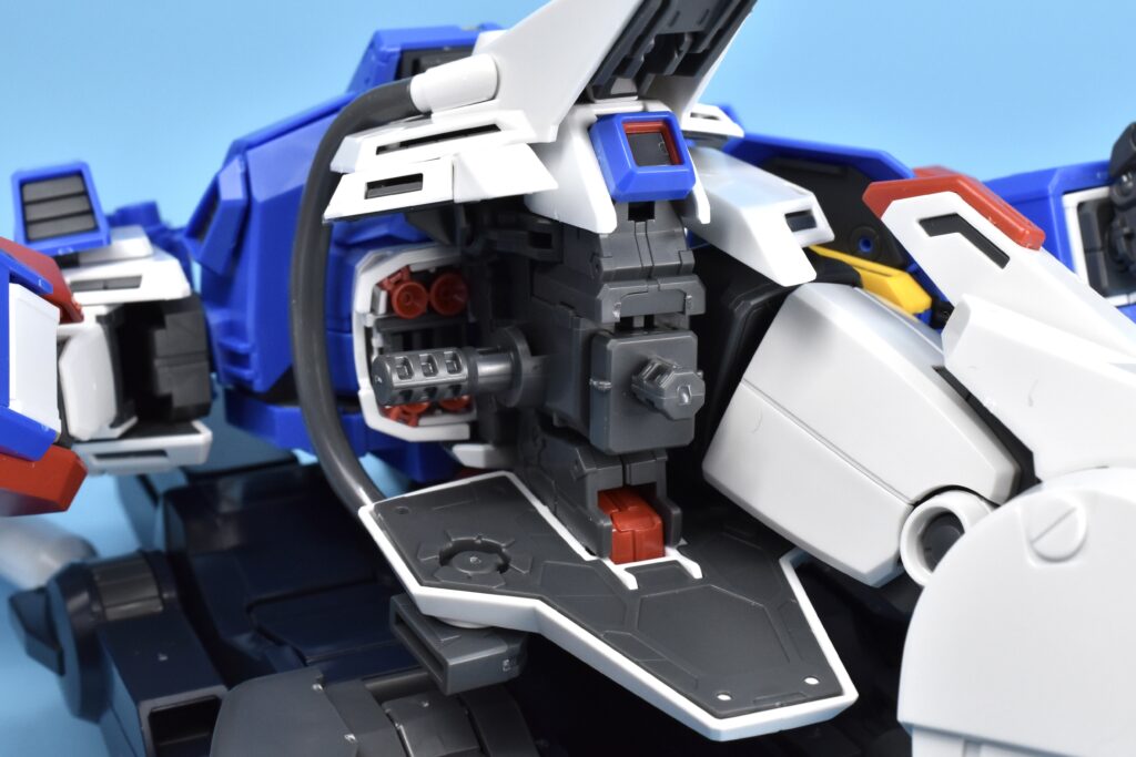 ハイパー・メガ・キャノン用のケーブルやパイプを接続できる構造になっていて、完全にフルアーマー前提の作りです💡