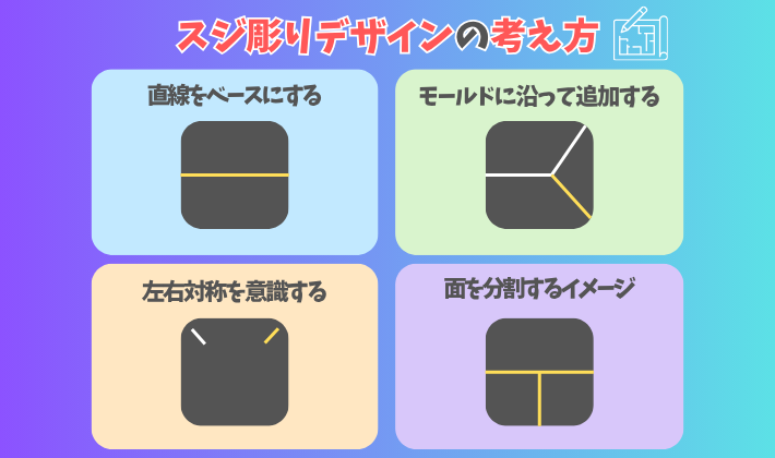 スジ彫りデザインで迷わないためには、「センス」ではなく“考え方の型”を知ることが大切です💡