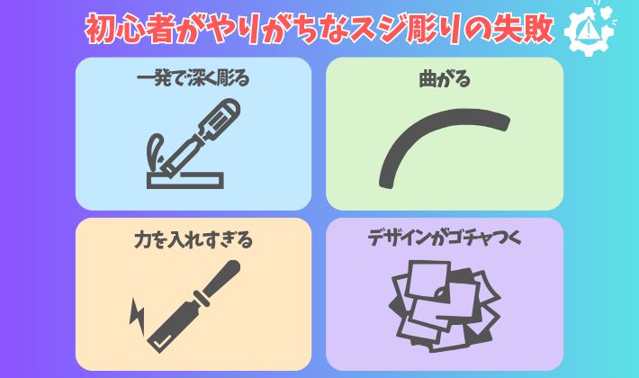 スジ彫りでよくある失敗が「ラインが曲がる」ことです💦
