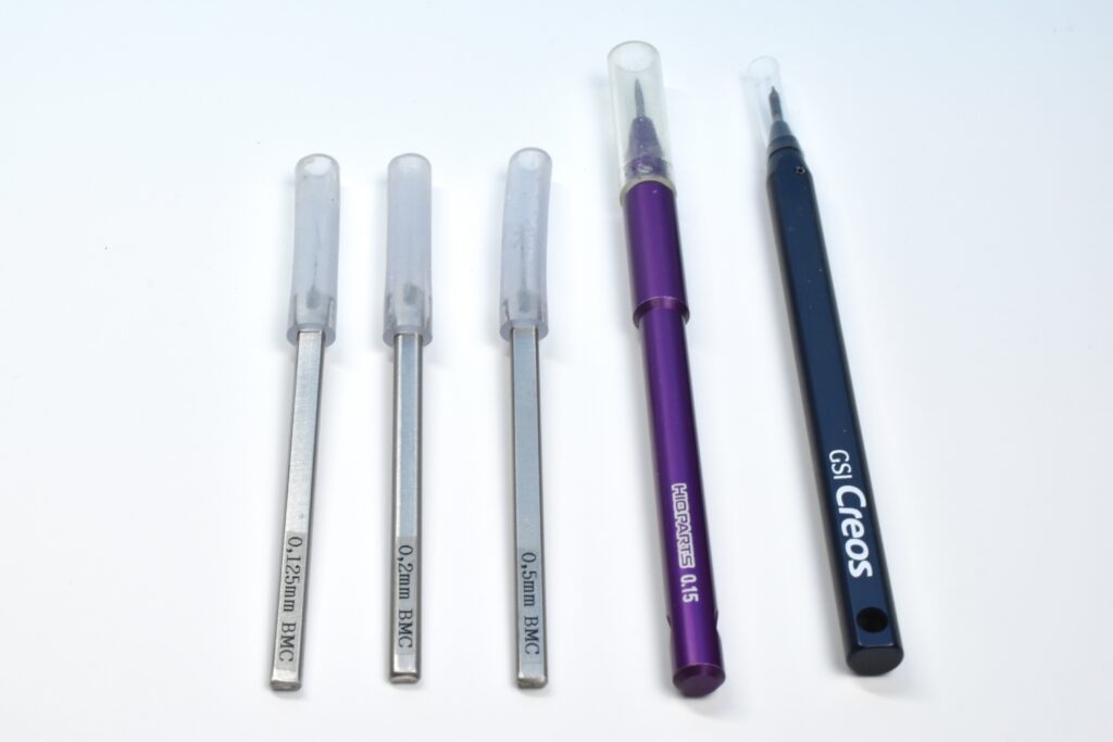 サイズは0.1mm〜0.5mmあたりがよく使われ、初心者は0.15mm〜0.2mmくらいから始めるのがおすすめです👍